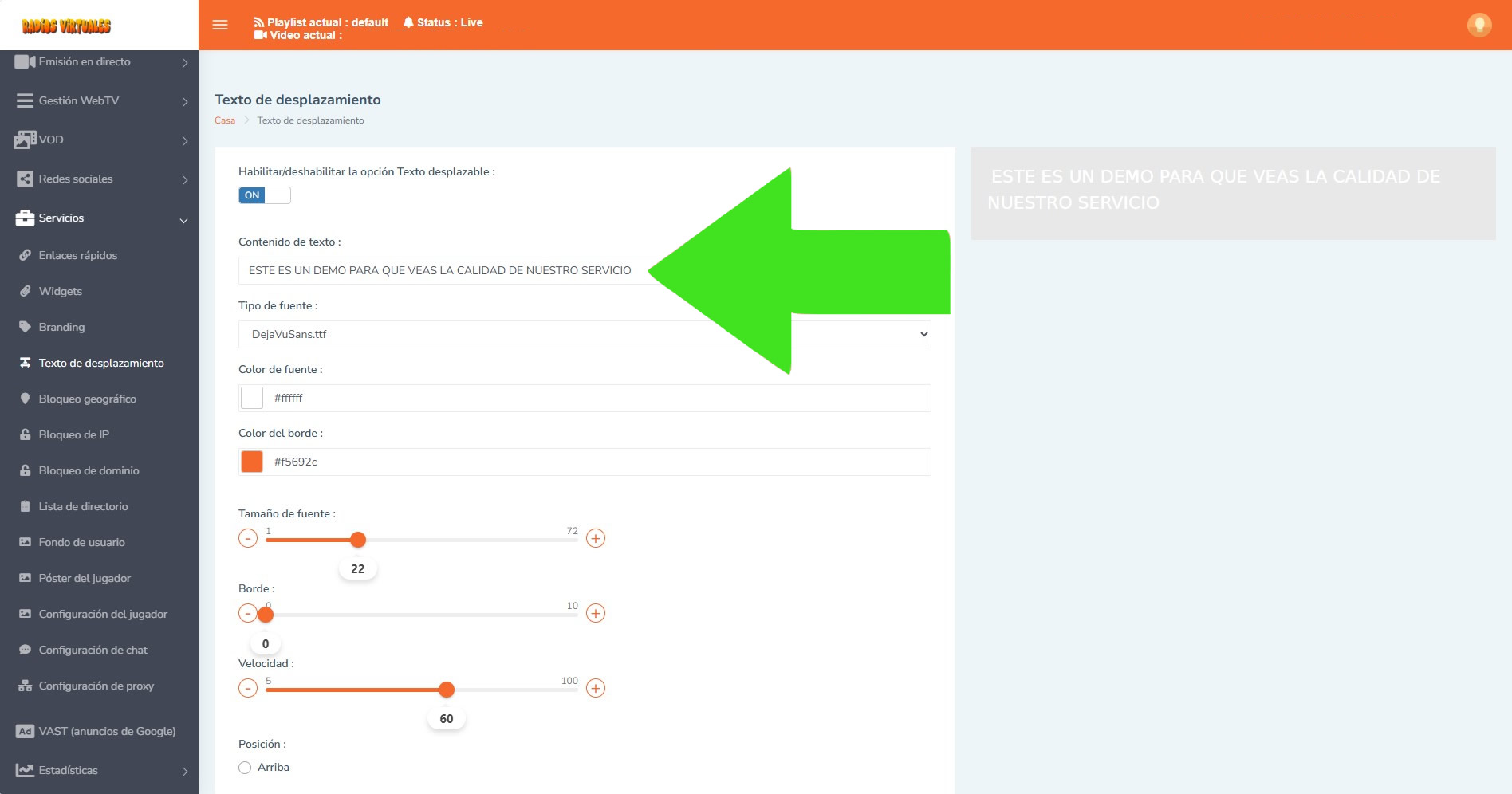 puedes tener un texto desplazable en tu trasmisión en vivo, esto es de mucho