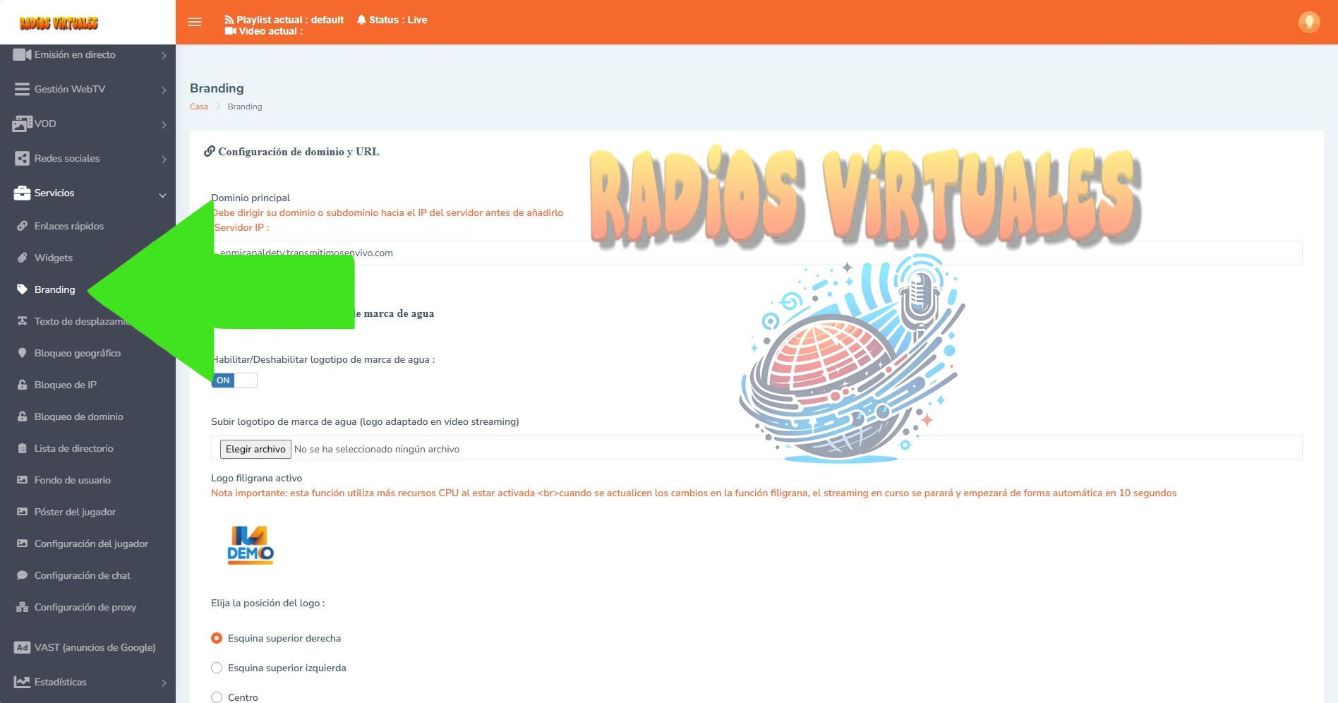 Puedes subir tu propio Logo y ubicarlo en la pantalla en el lado que Desees.
