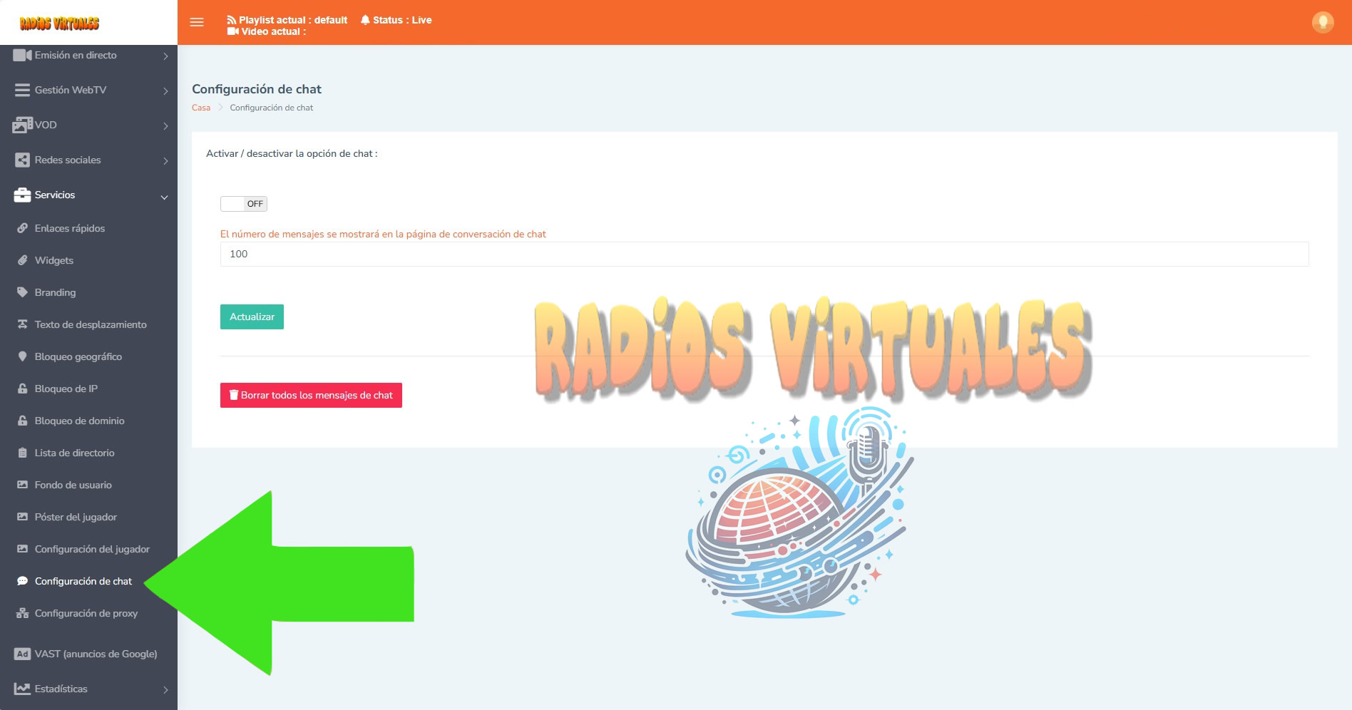 Si deseas interactuar con tu auditorio en Transmisiones en vivo, puedes activar el chat en tiempo real.
